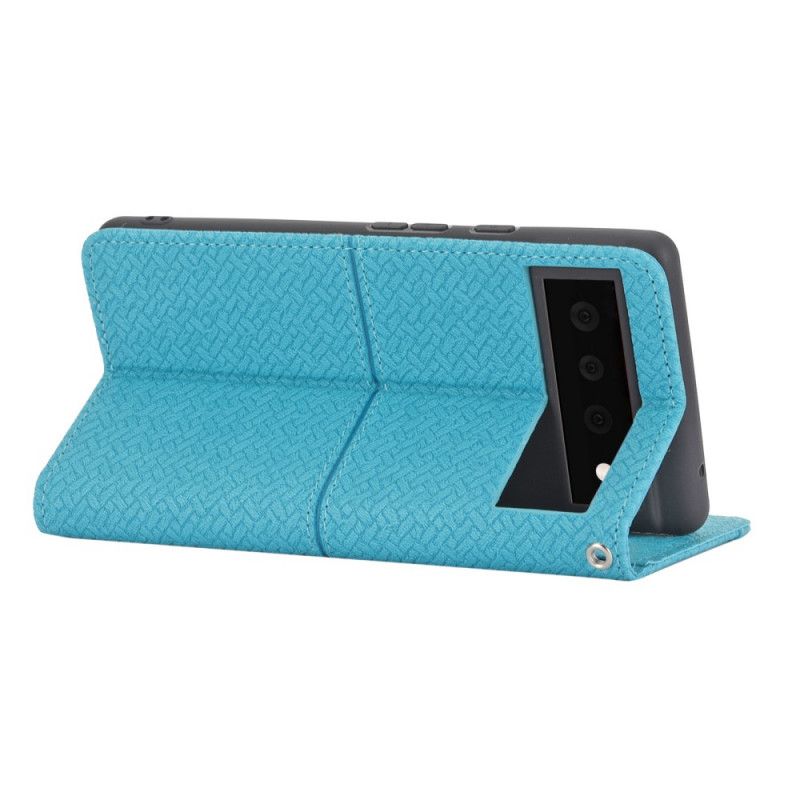 Etui Folio Do Google Pixel 6 Tkany Skórzany Pasek W Stylu