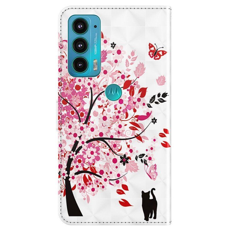 Eleganckie Etui Przedstawiające Różowe Drzewko To Elegancki Sposób Na Ochronę Twojego Moto E40 / E30 / E20 Przed Codziennymi Wypadkami.