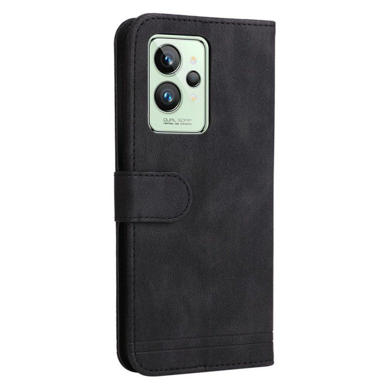 Etui W Stylu Skóry Z Ozdobnym Nitem I Paskiem Zapewni Ci Pełną Satysfakcję Z Realme Gt2 Pro.