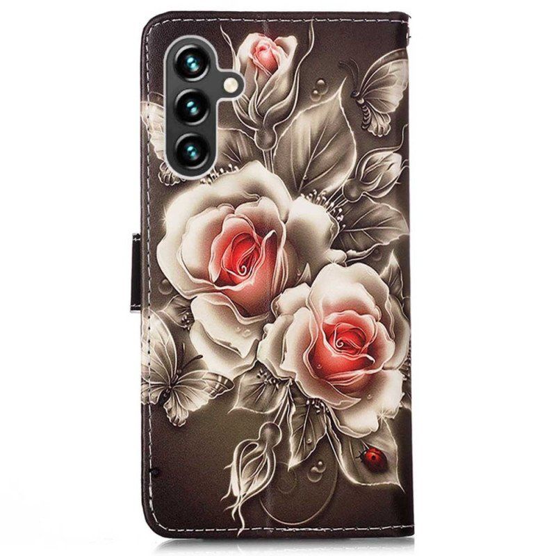 Etui Folio do Samsung Galaxy A54 5G z Łańcuch Paskowe Róże