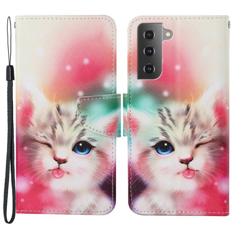 Etui Folio do Samsung Galaxy S22 Plus 5G Królewski Kot Ze Smyczą