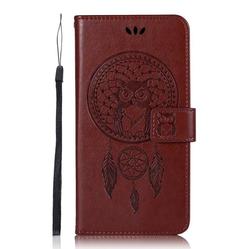 Etui Folio do Samsung Galaxy S22 Ultra 5G Sowa Łapacz Snów Z Efektem Skóry