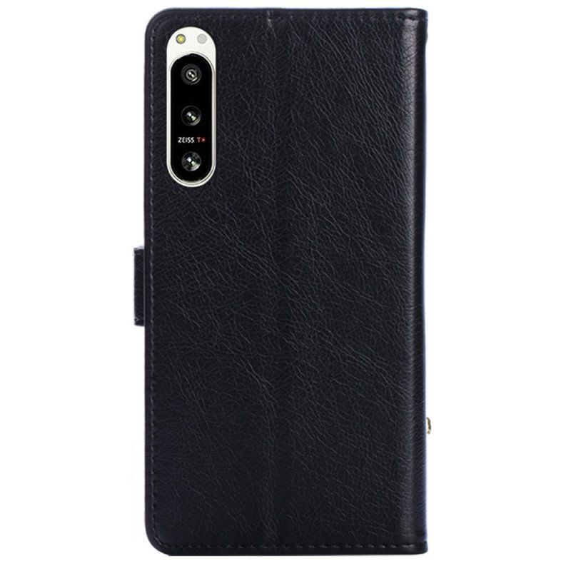 Piękne Etui Ze Sztucznej Skóry, Przeznaczone Do Telefonu Sony Xperia 5 Iv, Z Przydatną Portmonetką Zapinaną Na Zamek.