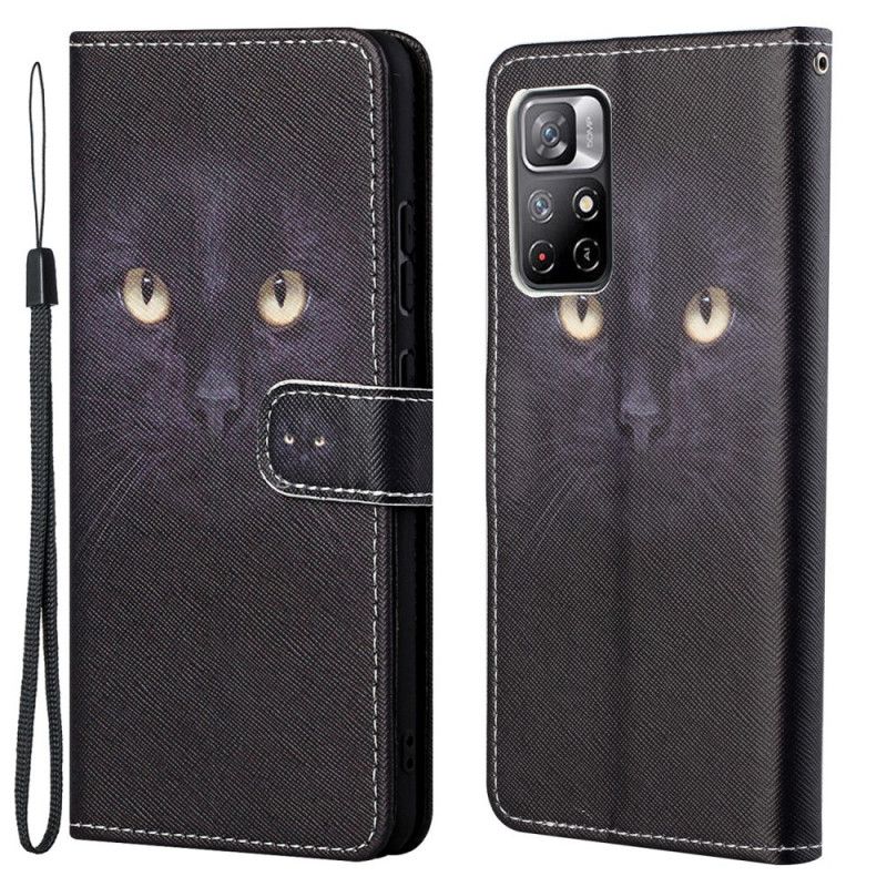 Pokrowiec Black Cat's Eyes w pełni chroni telefon Xiaomi Redmi Note 11 / Poco M4 Pro 5G i jest wyposażony w pasek.