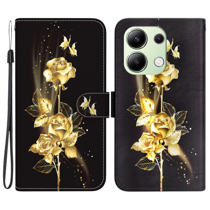 Etui Folio Do Xiaomi Redmi Note 13 4g Złote Motyle I Róża Z Paskiem