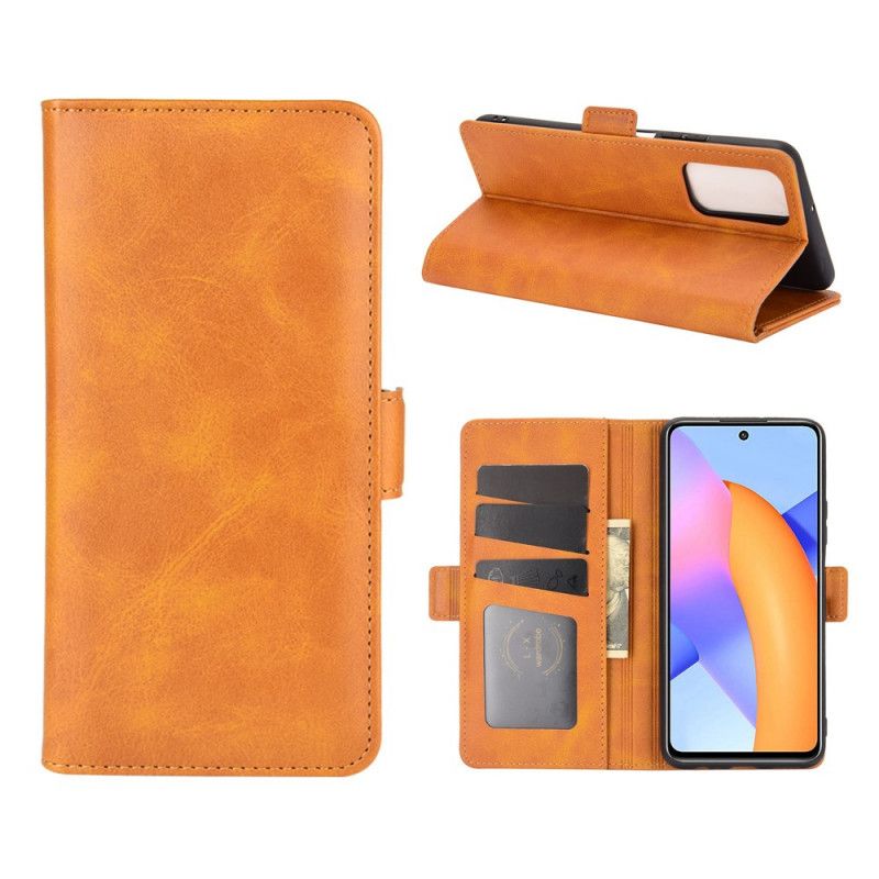 Pokrowiec ze sztucznej skóry telefonu Honor 10X Lite jest wyposażony w ochronę, kieszenie na karty i proste zamknięcie.