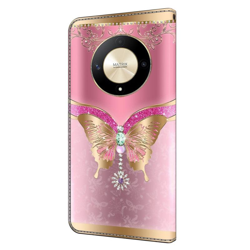Etui Folio Honor X9b / Magic 6 Lite Różowy I Złoty Motyl