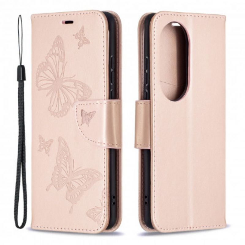 Etui Folio Huawei P50 Pro Motyle I Ukośna Klapa Etui Ochronne