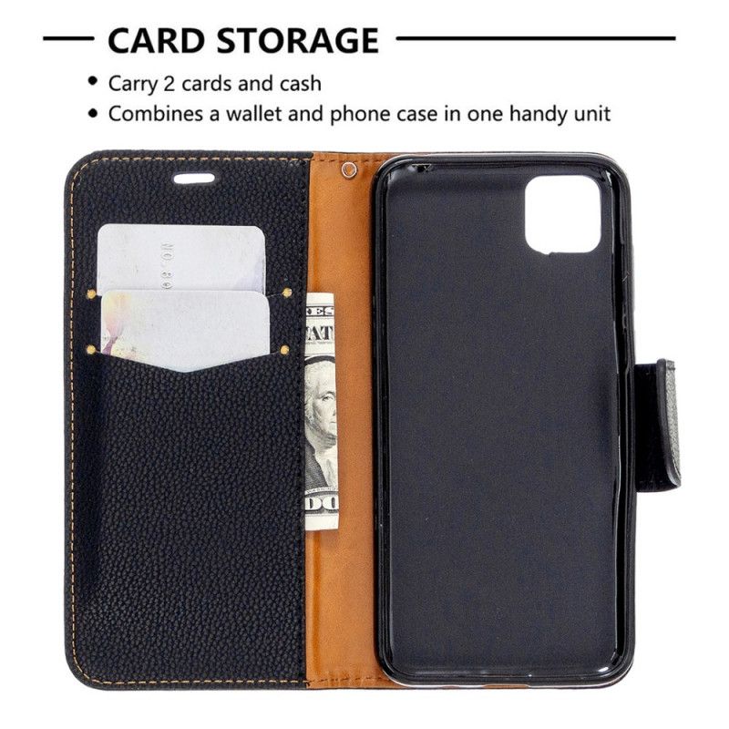 Ukośne etui z imitacji skóry liczi z klapką to idealna ochrona telefonu Huawei Y5p.
