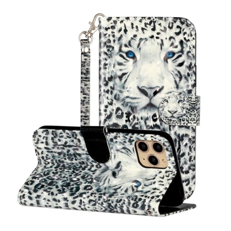 Etui Folio iPhone 11 Pro Max Biały Czarny Punkty Świetlne Tygrysa Z Paskiem Etui Ochronne