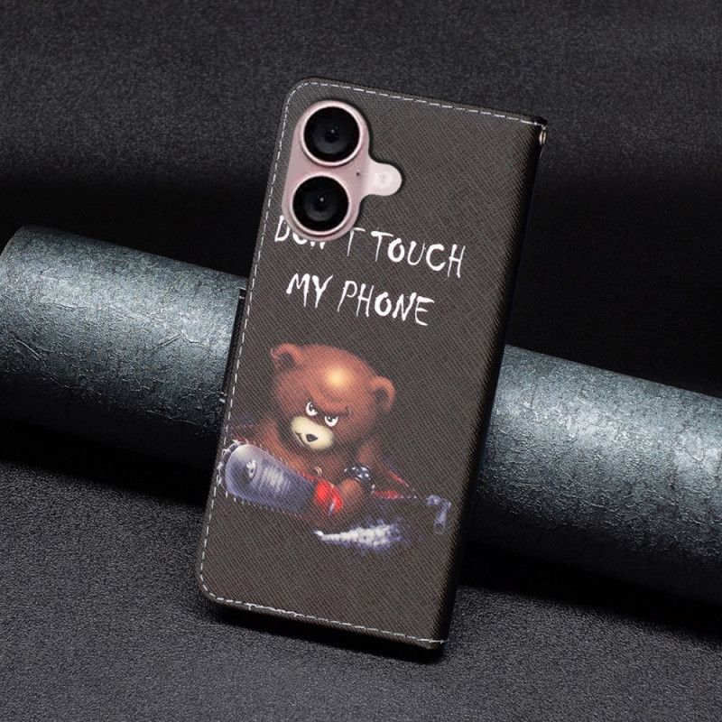 Etui Folio iPhone 16 Plus Miś Nie Dotykaj Mojego Telefonu