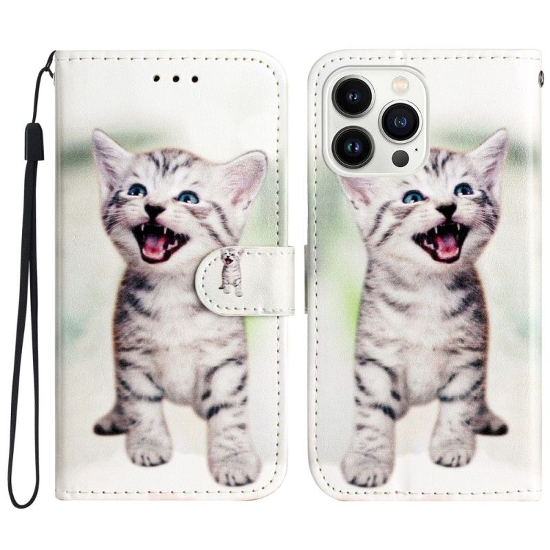 Etui Folio iPhone 16 Pro Wzór Kota Z Paskiem Etui Ochronne