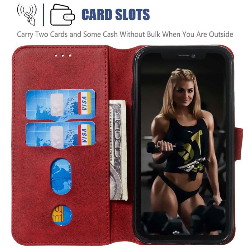 Etui Folio iPhone XR Czerwony Czarny Efekt Skóry Matowej Retro