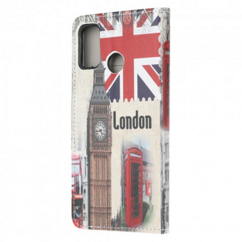 Lśniące i kolorowe etui z różnymi londyńskimi motywami do Moto G30 / Moto G10.