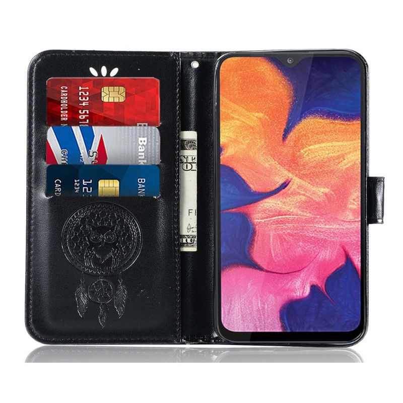 Doskonały efekt skórzanej osłony dla Samsung Galaxy A10e w kształcie łapacza snów z życzliwą sową.