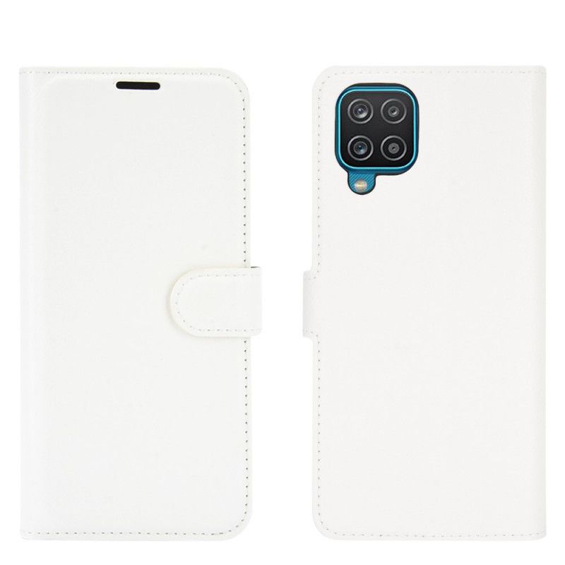 Etui Folio Samsung Galaxy A12 Biały Czarny Klasyczna Imitacja Skóry Liczi Etui Ochronne