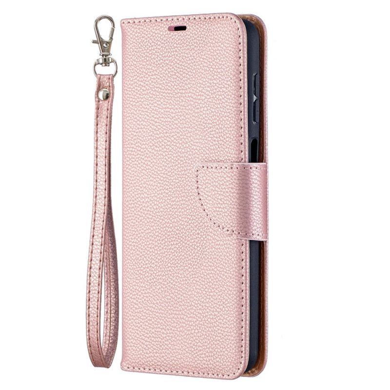 Etui z imitacji skóry liczi ze skośną klapką to idealna ochrona dla Twojego Samsunga Galaxy A12.