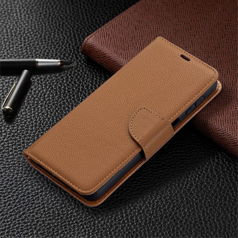 Ukośne etui z imitacji skóry liczi to idealna ochrona telefonu Samsung Galaxy A32 5G.