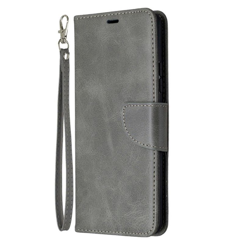 Etui Folio Samsung Galaxy A42 5G Szary Czarny Gładka Skośna Klapa Etui Ochronne