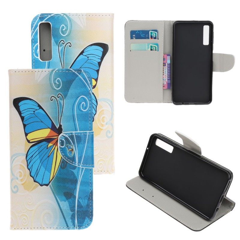 Ładne etui do Samsunga Galaxy A70 z żółto-niebieskim wzorem motyla.