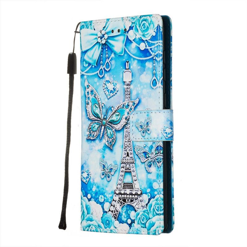 Etui Folio Samsung Galaxy A71 Motyle Wieży Eiffla Z Paskiem Etui Ochronne