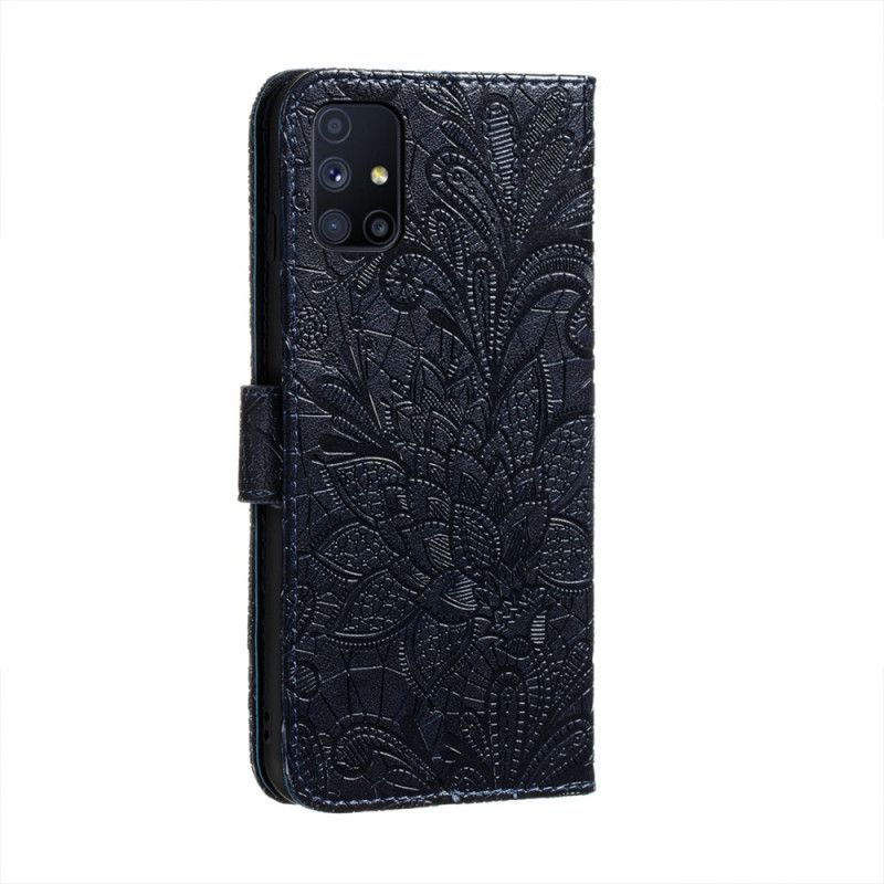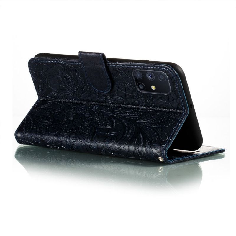 Pokrowiec ze sztucznej skóry Tribal Flowers zapewnia pełną ochronę Samsunga Galaxy M51 jest wyposażony w odpinany pasek.