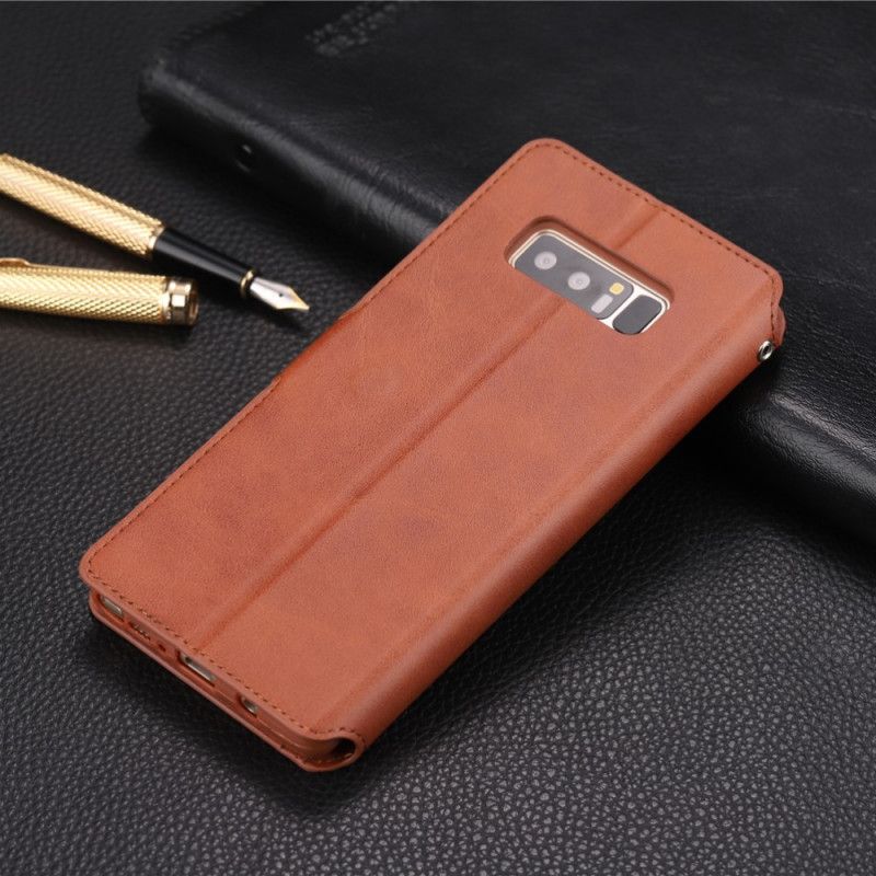 Skórzane etui w stylu retro od marki AZNS można zamknąć za pomocą prostego magnesu, idealne do ochrony telefonu Samsung Galaxy Note 8 .