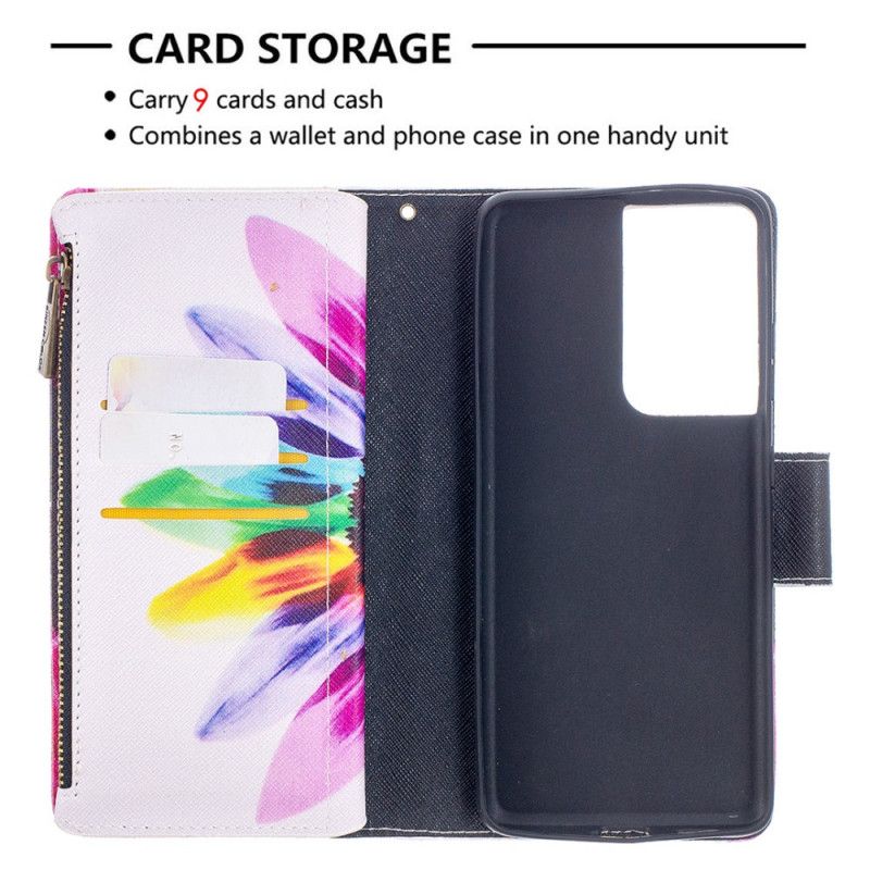 Etui Folio Samsung Galaxy S21 Ultra 5G Biały Czarny Kieszeń Zapinana Na Zamek W Kwiaty Etui Ochronne