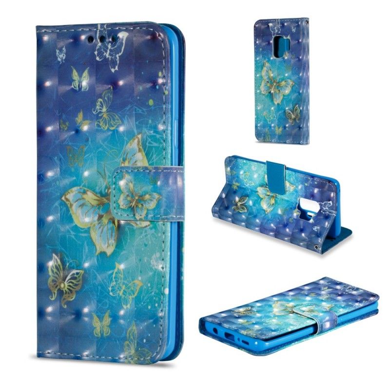 Etui 3D Golden Butterflies z klapką magnetyczną zapewnia ochronę telefonu Samsung Galaxy S9.