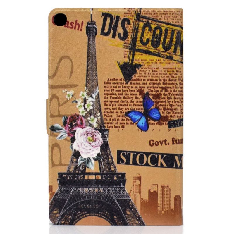 Okładka Paris Journal z wieżą Eiffla jest idealna do tabletu Samsung Galaxy Tab S6 Lite wszystkich miłośników stolicy.