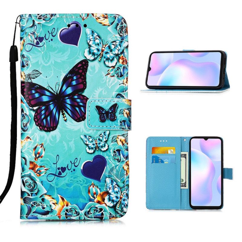 Oddaj osłonę Love Butterflies, która jest dostarczana z paskiem, do Xiaomi Redmi 9A i wykorzystaj ją jego portfel i funkcje pomocnicze.