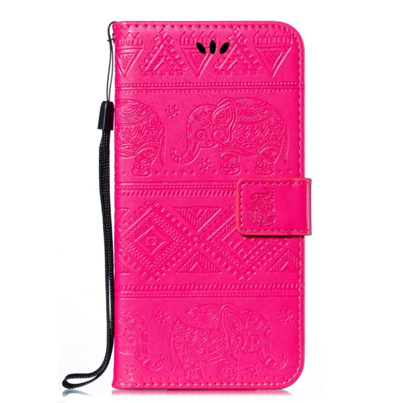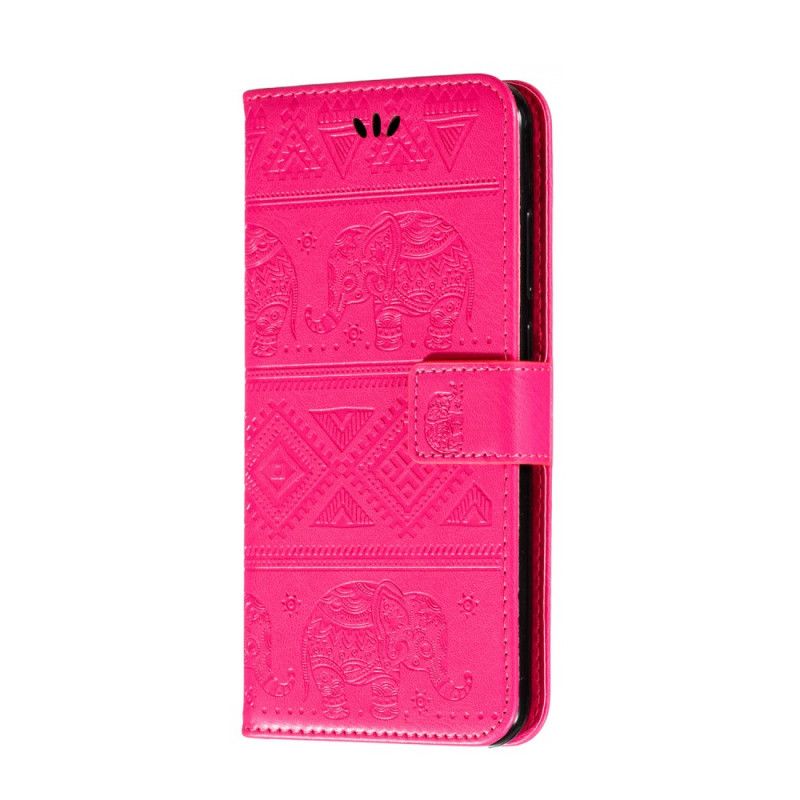 Etui Folio Xiaomi Redmi Note 8T Fioletowy Ciemnoniebieski Plemienne Słonie Ze Sztucznej Skóry Etui Ochronne