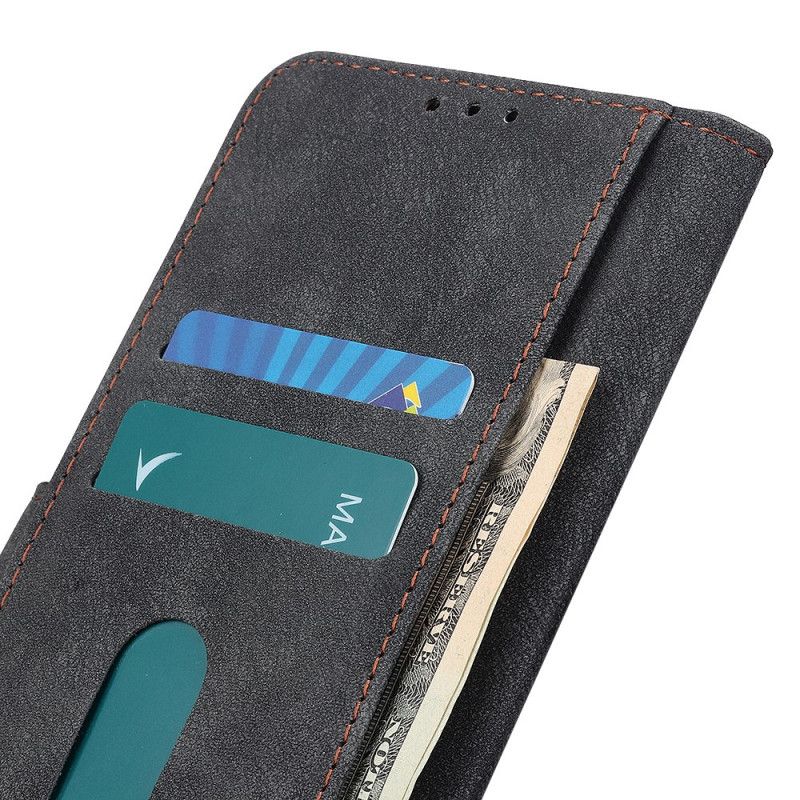Etui Folio Xiaomi Redmi Note 9S / Note 9 Pro Granatowy Czarny Styl Vintage Ze Skóry I Nitów Etui Ochronne