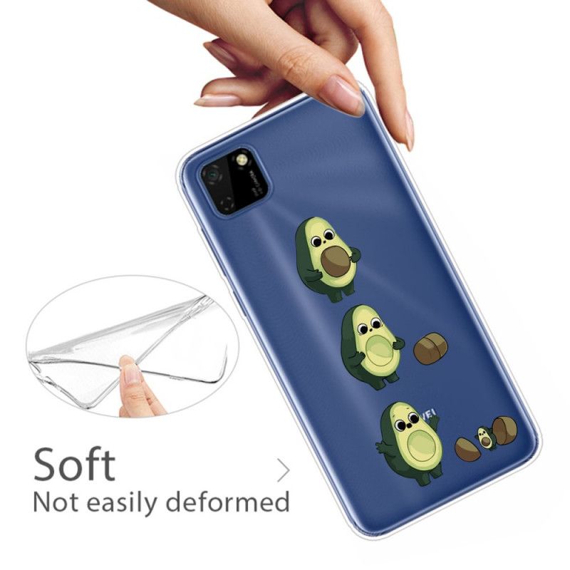 Przezroczysta obudowa, na której An awokado rodzi kolejne awokado, które wtapia się w delikatne kształty telefonu Huawei Y5p.