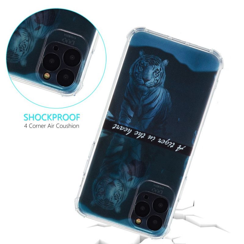 Twój iPhone 11 jest bardzo dobrze chroniony dzięki silikonowej obudowie ozdobionej wspaniałym tygrysem.