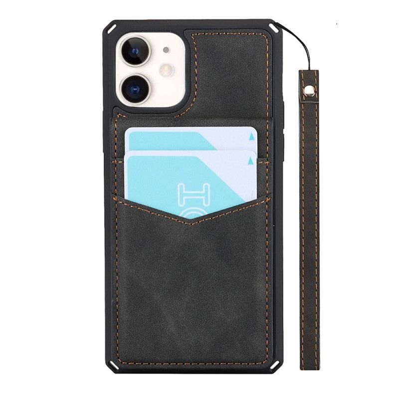 Zabezpiecz swój iPhone 11 za pomocą tego pokrowca ze sztucznej skóry z pionowym i poziomym uchwytem na karty.