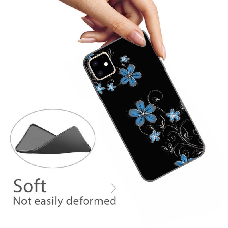 Piękne niebieskie kwiaty na wysokiej jakości silikonowym etui optymalnie zabezpieczają tył i krawędzie iPhone'a 11.