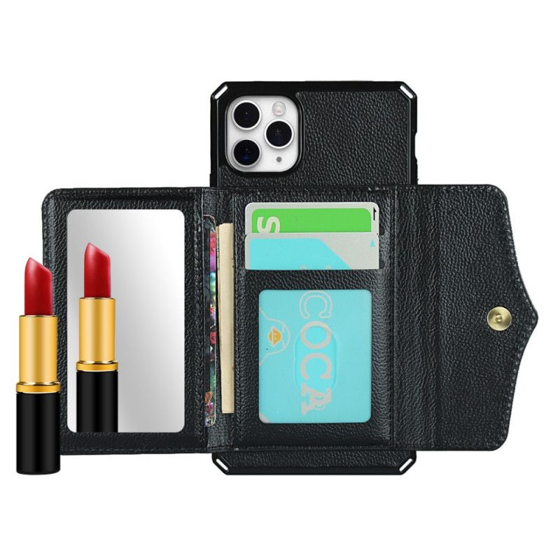 Etui iPhone 11 Pro Max Czerwony Czarny Wielofunkcyjny Z Lusterkiem I Paskiem