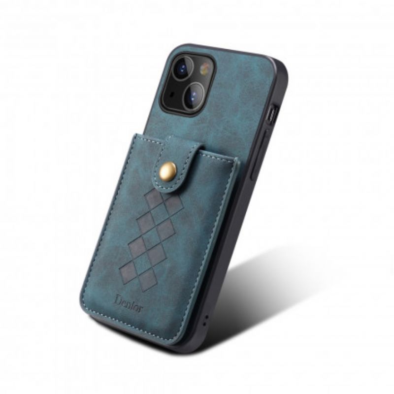 Chroń swojego iPhone'a 13 tym etui firmy DENIOR, które jest wyposażone w zdejmowany uchwyt na karty.