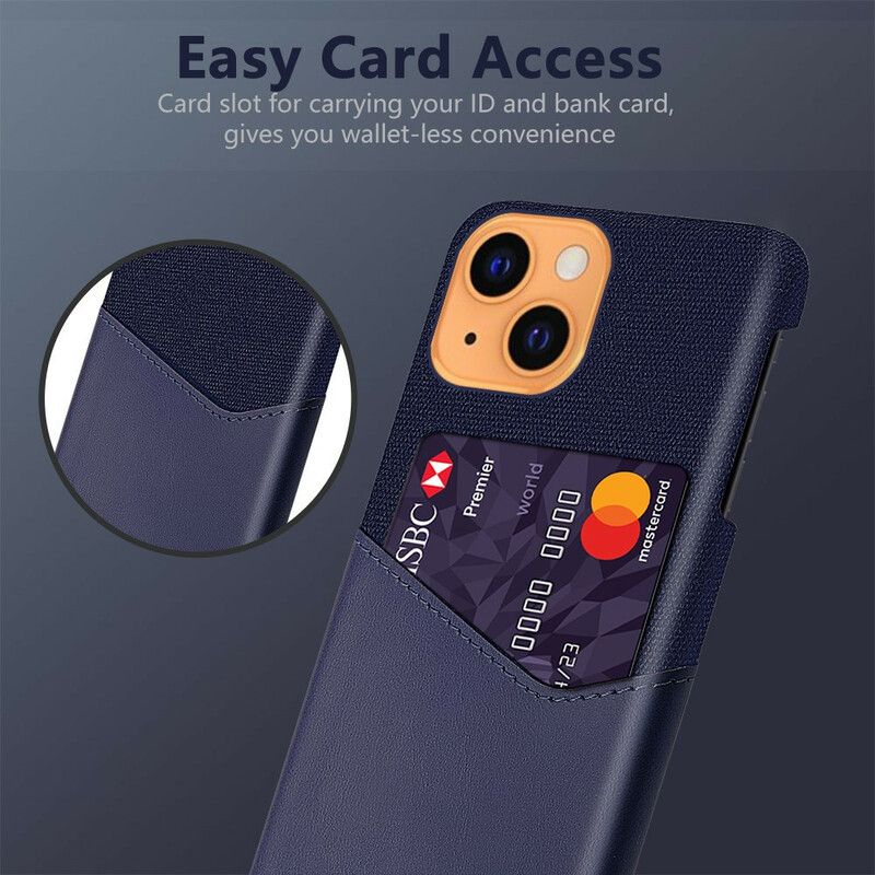 KSQ zaprojektowało to wspaniałe etui z imitacji skóry i tkaniny, ze zintegrowanym uchwytem na karty, specjalnie dla iPhone 13.