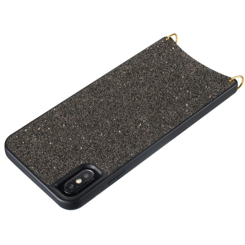 Etui iPhone X Brązowy Czarny Cekiny Z Łańcuszkiem