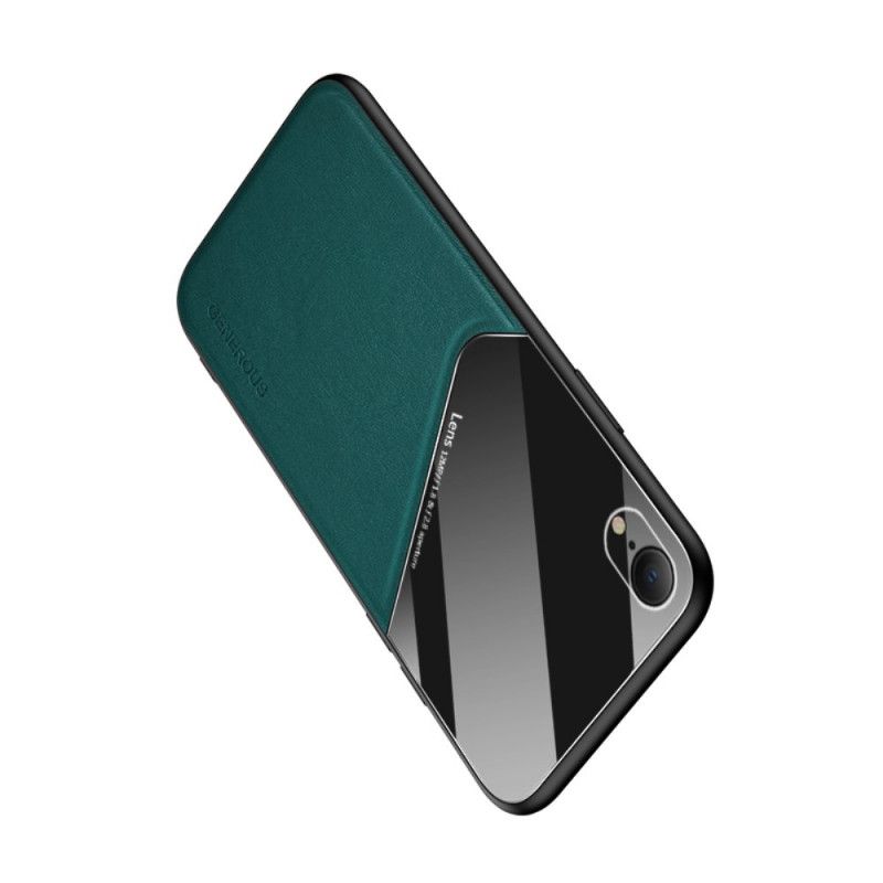 Obudowa Super Hybrid jest wykonana z silikonu, imitacji skóry i szkła, aby bezpiecznie zabezpieczyć iPhone'a XR.