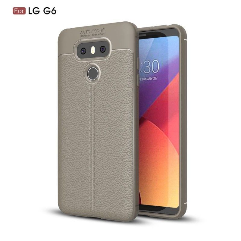 Etui LG G6 Szary Czarny Efekt Skóry Z Podwójną Linią Liczi