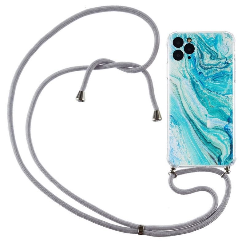 Wspaniałe silikonowe etui w stylu marmuru z praktycznym sznurkiem, który zabezpiecza iPhone'a 11 w doskonały sposób.