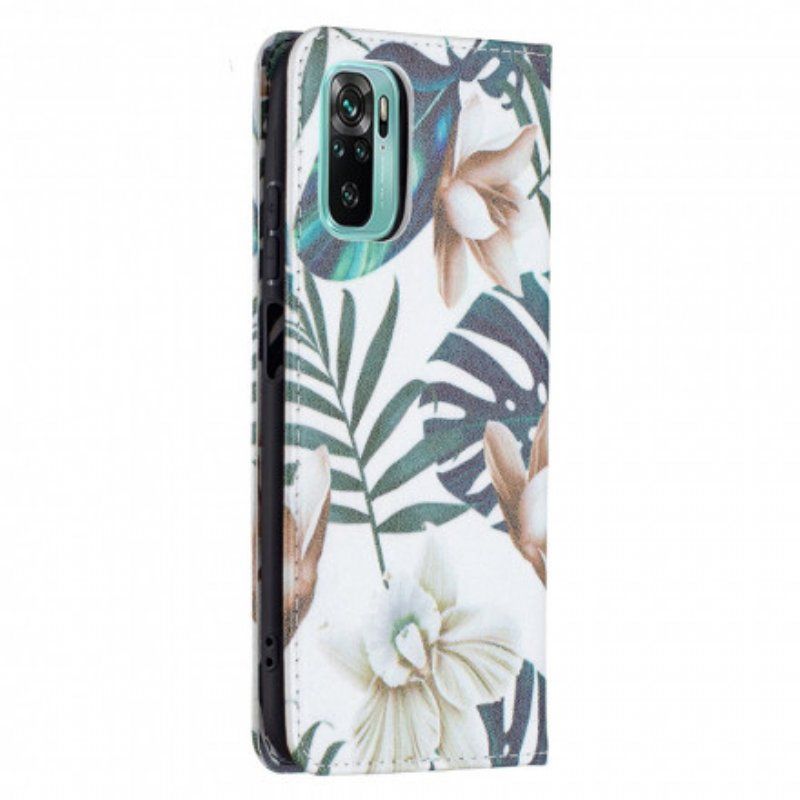 Flip Cover Leaves, Z Zapięciem Zintegrowanym Z Pokrowcem, Idealnie Nadaje Się Do Wielofunkcyjnej Ochrony Xiaomi Redmi Note 10/Note 10S/Poco M5S.
