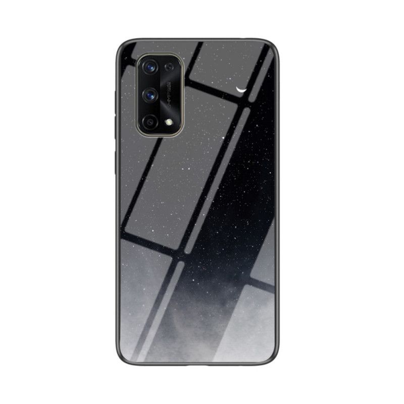 Etui Realme 7 Pro Szary Czarny Piękne Szkło Hartowane Etui Ochronne