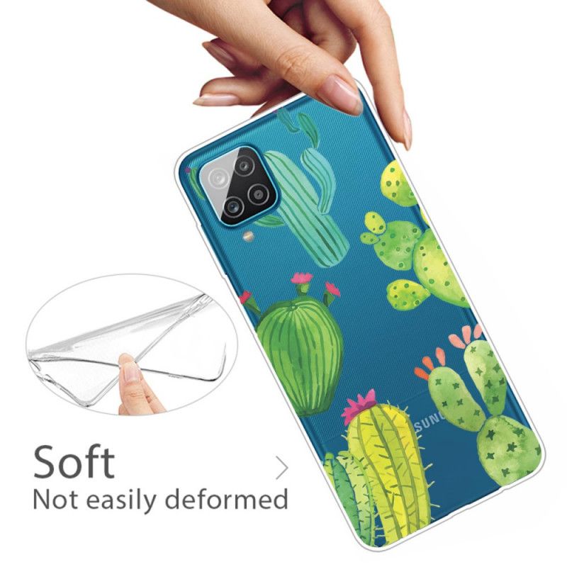 Etui Cactus Aquarelle, wykonane z elastycznego silikonu z przezroczystym wzorem, idealnie nadaje się do ochrony telefonu Samsung Galaxy A12.