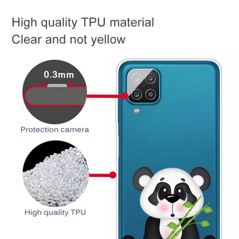 Przezroczysta powłoka Smutnej Pandy bezpiecznie zabezpiecza Samsung Galaxy A12 i nadaje mu osobisty wygląd.