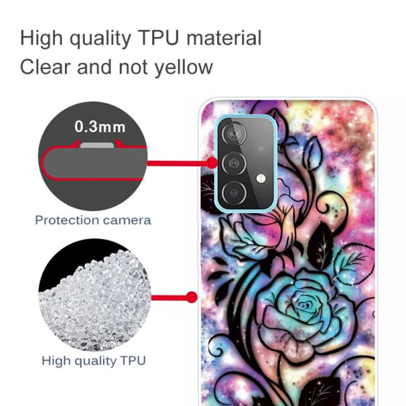Etui Graphic Flower z cienkiego i lekkiego elastycznego silikonu doskonale chroni Samsunga Galaxy A32 5G.