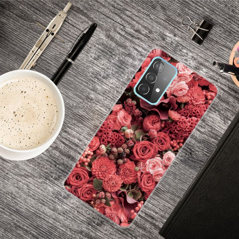 Etui Samsung Galaxy A32 5G Różowy Czerwony Intensywne Kwiaty Etui Ochronne